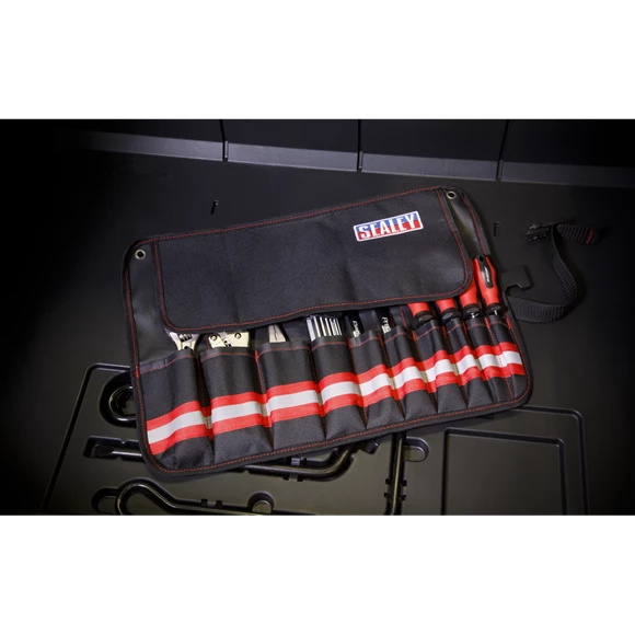 - 10-Pockets of various sizes for an array of tools.
