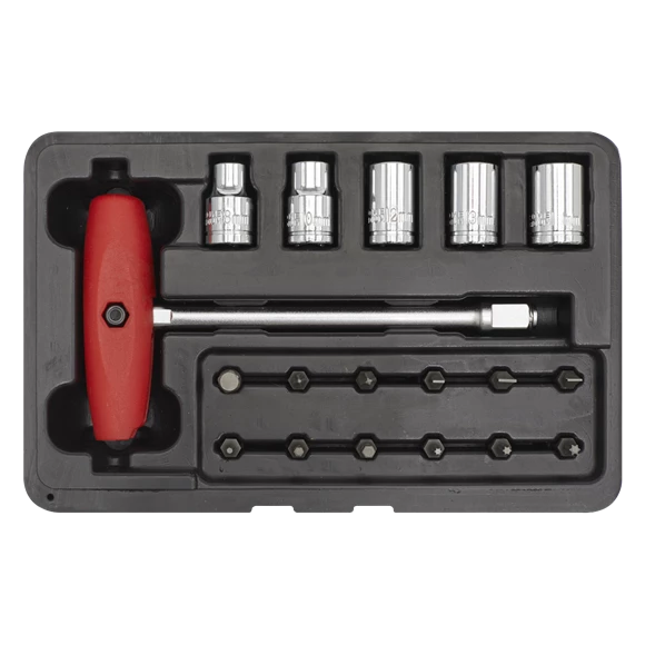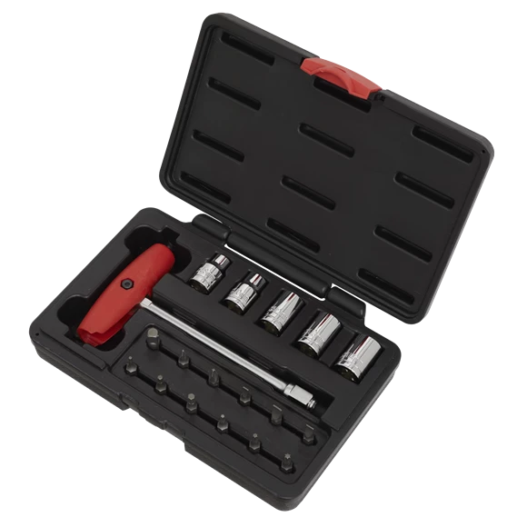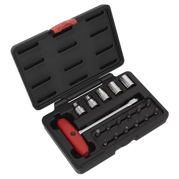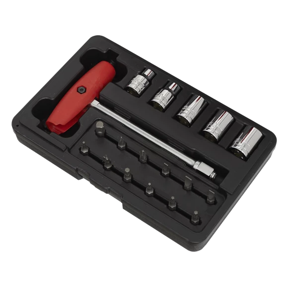 - Small compact kit comprises a selection of essential sockets and bits for use on motorcycles.