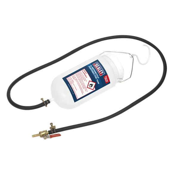 - Features 1L tank, 950mm hose, two hose clamps and on/off tap.