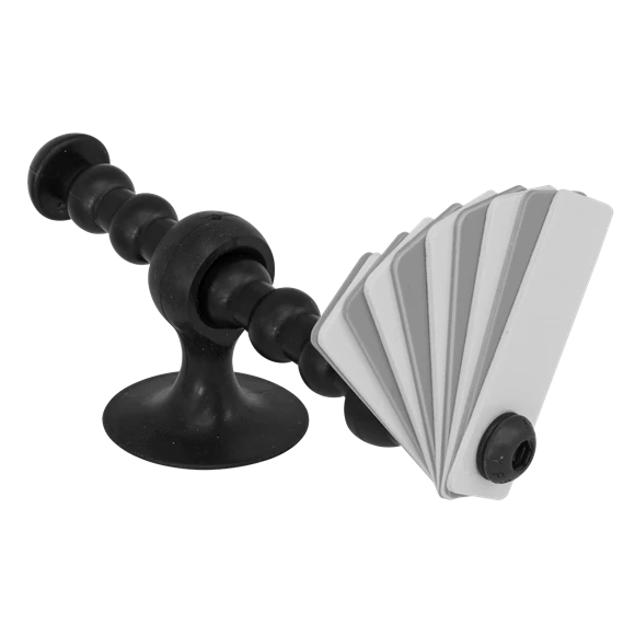 - Panel gap setting tool with 10 plastic gauges and a suction cup for damage-free mounting and use.
