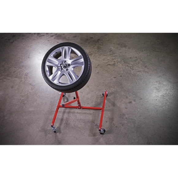 - Cone is angled for ease of use, holds wheel up to 22″.