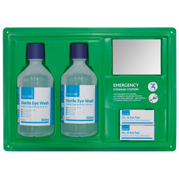 - Comprises sterile eye and wound wash for cleaning and eye pads for dressing.