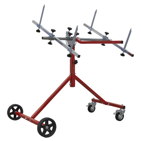 - Fitted with two fixed Ø180mm wheels and two braked castors for manoeuvrability.
