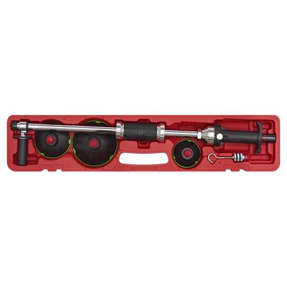 - Versatile suction dent puller fitted with integral vacuum generator/indicator.