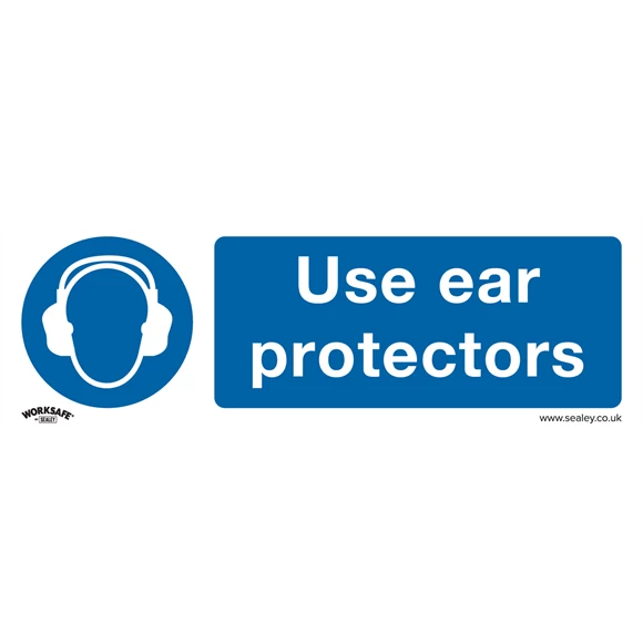 Sealey Use Ear Protectors – Mandatory Safety Sign – Self-Adhesive Vinyl